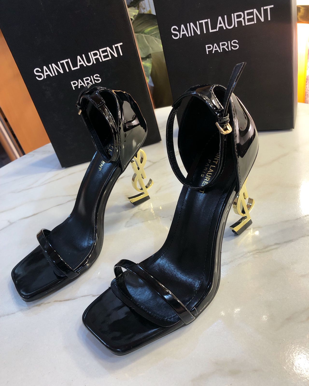 BLACK BEAUTY GOLD HEEL OPYUM SANDLE